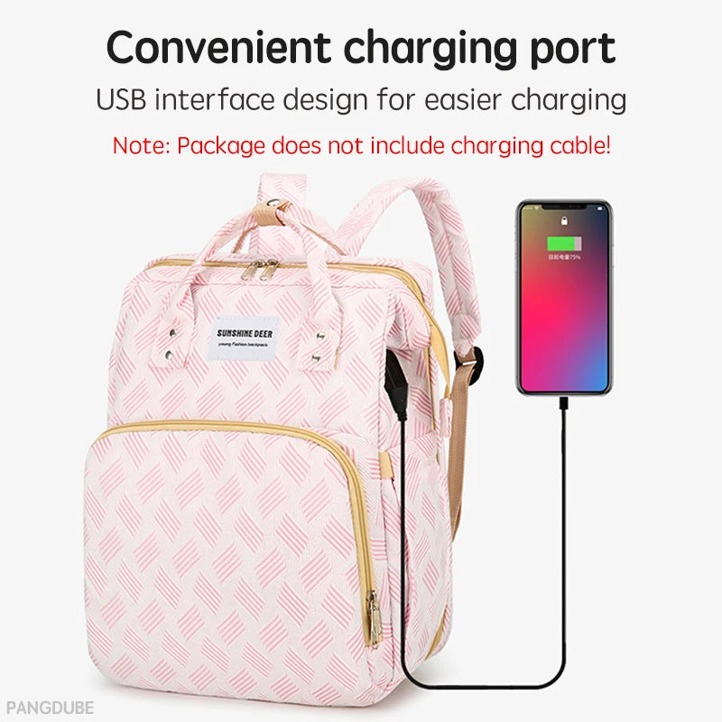 Baby Diaper Bag with Stroller Hooks Portable Baby Crib Diaper Changing Pad Baby Carrier Bag for Mom Backpack